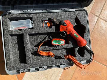 Forbice a batteria professionale RINIERI IRON 400 “non funzionante”. La forbice è praticamente nuova, ma si vende con “non funzionante “ in quanto a seguito del taglio parziale del filo è saltato qualche componente della scheda del pacco batteria che ne gestiva il funzionamento. Del tutto riparabile.