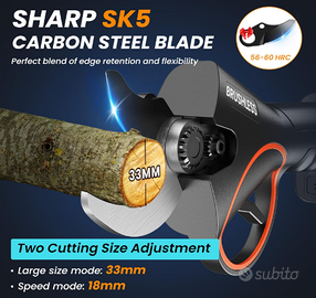 【Efficienza e Precisione di Potatura】Le nostre forbici potatura elettriche vantano lame in acciaio SK5 ad alta resistenza, forgiato con un design ad arco per tagli fluidi e puliti. Non danneggia i rami e consente tagli precisi fino a 33 mm di diametro. Lavora in modo continuativo ed efficace senza affaticare le mani.