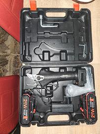 Forbici elettriche a batteria per potatura, ideali per lavori in giardino.