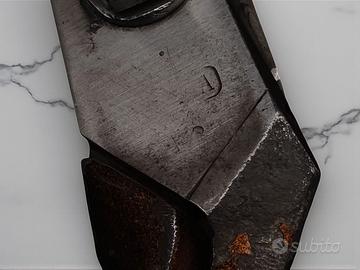 Tre antiche forbici professionali da sarto anni ‘40/50, utensili da taglio specializzati progettati con forme e misure diverse per l'utilizzo su tessuti. Presentano tipicamente lame lunghe, pesanti e impugnature asimmetriche in metallo di prima scelta forgiato per un taglio preciso e prolungato. Includono un perno regolabile o una vite per calibrare la tensione delle lame. Strumenti indispensabile per il taglio di cartamodelli e vari tipi di tessuto nella sartoria. Le due più corte laccate nero, sono di produzione tedesca mentre la più lunga laccata in rosso/bronzo è di origine italiana e precisamente da Maniago (Pordenone) fondato nel lontano 1896, la celebre "città dei coltelli" italiana. Con oltre 125 anni di storia e di esperienza tramandata, l'azienda rappresenta l'eccellenza della tradizione manifatturiera di Maniago. Stato: presentano segni di utilizzo dovuti all'età. Considerati oggetti da collezione. Dimensioni lunghe: 26,5/27/34,5 cm.