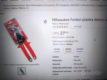 Vendo causa inutilizzo forbici per piastra destra Milwaukee praticamente nuove. Prezzo trattabile