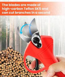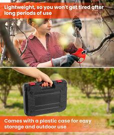 【Efficienza e Precisione di Potatura】Le nostre forbici potatura elettriche vantano lame in acciaio SK5 ad alta resistenza, forgiato con un design ad arco per tagli fluidi e puliti. Non danneggia i rami e consente tagli precisi fino a 30 mm di diametro. Lavora in modo continuativo ed efficace senza affaticare le mani.