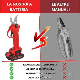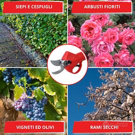 [VERSATILE] forbice potatura a batteria indispensabile per tutti i lavori da giardinaggio professionale. Ideale per potatura di uva in vendemmia, innesto in orto, taglia di siepi e tanto altro.