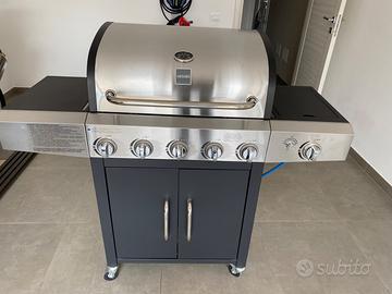 Caratteristiche tecniche:6 fornelli con appoggio,telo anti pioggia originale per esterno.