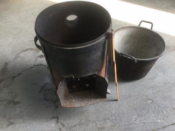 Come da foto vendo fornacella o focone con paiolo in ferro zincato, il tutto e’ in buono stato ( no ruggine) , euro 40 .( viste le dimensioni non spedisco, anche perche’ costerebbe piu’ la spedizione che il focone).