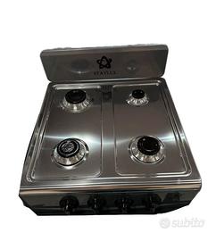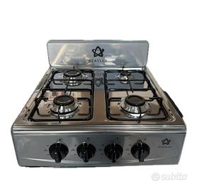 FORNELLO CUCINOTTO CON SUPPORTO 4 FUOCHI CON 2 RIPIANI IN ACCIAIO DA CAMPEGGIO