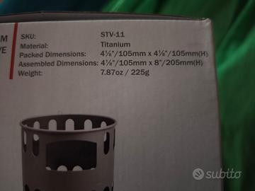 Fornello Campeggio Toaks originale Titanio modello grande (205mm), leggerissimo, nuovo mai usato in scatola originale