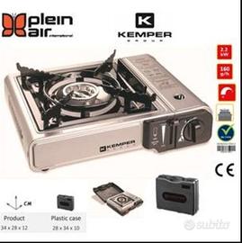 Fornello portatile per cartuccia Kemper 557, con potenza regolabile, accensione piezo integrata, valigetta per il trasporto, sistema di sicurezza con sgancio automatico della cartuccia, sistema di sicurezza contro il surriscaldamento accidentale - poggia pentola smontabile per il lavaggio ed il trasporto - ideale per cucinare in campeggio, barca e a centro tavola - kW 2.2 - 160 g/h
