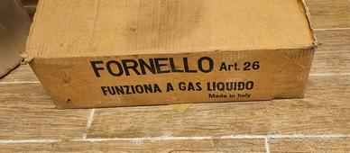 Fornello da campeggio a gas mai usato come nuovo con imballaggio originale completo di tubo e valvola per bombola