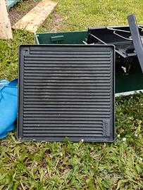 Fornello due fuochi più piastra in ghisa per la cottura diretta dei cibi.