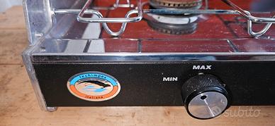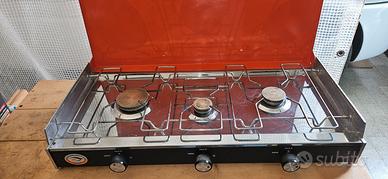 Fornello a tre fuochi Techinpex alluminio e acciaio inox ,in perfette condizioni, più mobili richiudibile originale, il miglior Fornello in commercio.