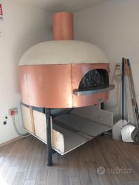 Forno a legna marca Ambrogi, modello Napoli, con corpo rivestito in rame liscio naturale e cupola standard bianco opaco.
