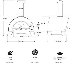 Dettagli Tecnici Forno a Legna da Giardino Ciao M Top Alfa Pizza