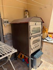 Vendo forno a legna Artigianale con impianto a gas auto costruito per impossibilitato ad accendere con la legna ma se si ha spazio e lontano da abitazioni puo' essere riconvertito a legna....il forno è dotato di luce interna giraarrosto, cmpleto di teglie,usato pochissimo....aggiunto sul pianale lastra pietra lavica da 30 mm. pagato 1100,00 euro