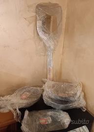 Forno nuovo a legna o gas,mai usato ne provato, con vari accessori nuovi e inscatolati, si puo' usare a gas, o a legna, in base a come desiderate e dove lo montate, insieme do questi accessori: -Bruciatore a gas -set pale e spazzola 3 pz -set di pentole da fuoco -accessorio Barbecue per forno per fare anche grigliate o avere brace sempre pronta... - platea completa Biscotto casapulla (oltre alla refrattaria gia' in dotazione con il forno) carrello con mensole Con due ruote , contenitori nuovi dove conservare e far lievitare le pizze, un'altra pietra refrattaria per cuocere e servire direttamente a tavola i cibi, bruciatore ed accessori per usarlo a gas, cartoni per pizze da asporto, Le dimensioni interne del forno dovrebbero essere 60 x 53 cm., adatto per cuocere 2-3 pizze per volta. Ha il suo termostato e sportello , ma avevo preso anche un pirometro nuovo che do insieme al forno, non so se ho altro, ma e' un affare, vendo per inutilizzo, e' sempre stato al coperto chiuso.