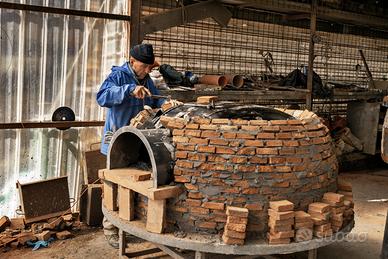 FORNI A LEGNA Il vero forno a legna Napoletano con mattoni e biscotto di Serrento, creato dal maestro Luigi Napoli, il top per cuocere qualsiasi variante di pizza. Il nostro forno a 450 gradi interni disperde solo 30 gradi, sale a temperatura in 30 minuti ed il giorno dopo regge 240 gradi a forno spento. I Nostri forni sono scelti in tutto il mondo da milioni di professionisti per la stabilità e flessibilità di cottura durante le ore di lavoro. ARTISTICA SALERNITANA 1)Prima discegliere un forno assiuratevi che il forno pesi (in modo che abbia una scorta di calore infinita) 2)Lo spessore della platea di almeno 30 cm e una coibentazione di 25 cm per lato. 3)La volta precisa con i mattoni a taglio e non frontali, in modo da non avere dispersione termica durante le ore di lavoro.