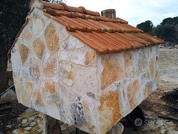 Vendo forno a legna artigianale realizzato con pietra locale del nostro territorio pugliese e mattoni refrattari. La canna fumaria sarà fornita completa. Da realizzare in loco il basamento per installare il forno non incluso nel prezzo. Il trasporto è a carico dell'acquirente. Allego contatto telefonico diretto di chi lo ha realizzato