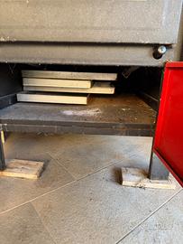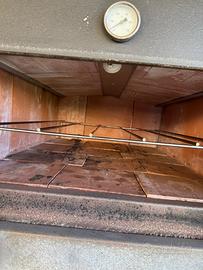 Forno a legna a camera separata due anni di vita, interamente ricoperto con pietra refrattaria, termometro e lampada interna. 4 teglie grandi o 4/5 pizze alla volta se si cuoce su pietra