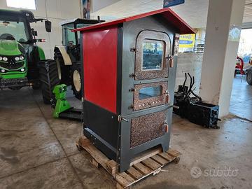 Forno a legna da esterno marca TRANQUILLI FORNI con tre piani di cottura -pareti interne di cottura in acciaio inox smontabili e lavabili - vetro inserito nella porta della camera di combustione per avere sotto controllo i consumi - valvole di regolazione dei fumi di scarico e dei vapori della camera di cottura -luce nella camera di cottura- termometro e timer con suoneria - ventola interna escludibile -barbeque interno - carrello con ruote - nella parte bassa è presente un utilissimo piano porta legna/vivande.