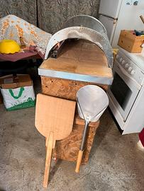 Capienza forno 1 pizza che si cuoce in 30 secondi, temperatura raggiunta 450gradi.