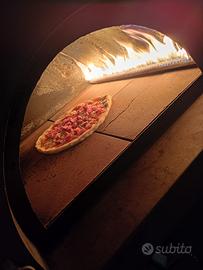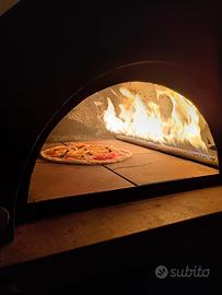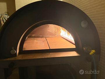 Forno a legna e gas modello Elite.Trattasi del forno più grande di categoria con base della camera di cottura in mattoni refrattari. Possibilità di alimentazione sia a legna ( come classico forno a pietra ) che a gas. Interno camera circa 60x 70. Completo di carrello con ruote posteriori e manici anteriori (a scomparsa) per un facile spostamento.La doppia imbottitura in lana di roccia e la valvola di regolazione scarico fumi , permettono un consumo di legna /gas ridotto e una resa energetica superiore. Il tutto corredato dal coperchio di chiusura.Dimensioni esterne di ingombro :80 larghezza ×90 profondità x 150 altezza.Peso 100kg circa.