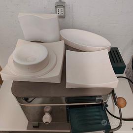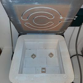 Forno Skutt Firebox 14 particolarmente adatto per vetrofusione, ma si può usare per ceramica, smalti o altro, quasi nuovo usato pochissimo e tenuto molto bene, con ripiano 33x33cm e 6 stampi Creative Ceramics per la curvatura, 3 dei quali completamente nuovi.Interno 36x36x17,5cm.Potenza 2,4kWTemp max 870 CProgrammatore per curve da 8 spezzate.