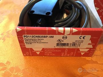 Posso spedire con corriere in tutta Italia I sensori fotoelettrici con soppressione dello sfondo sono utili quando il sensore deve rilevare un oggetto collocato molto vicino a uno sfondo riflettente. Questa soppressione dello sfondo è particolarmente efficace quando l'oggetto e lo sfondo hanno una riflessione simile (ad esempio, la luce restituita al sensore dall'oggetto è quasi uguale alla luce che riflette dallo sfondo) o quando si devono rilevare oggetti scuri su uno sfondo più luminoso e riflettente. Con questa fotocellula che rileva fino a 2,5mt è possibile rilevare in sicurezza anche le persone, senza che sfondi riflettenti (come ad esempio un pavimento lucido) diano falsi segnali. Può essere utilizzata in porte, cancelli, garage... Fotocellula a soppressione di sfondo Modello PD112CNB25BP con 4mt di cavo â?¢ Campo di attivazione: 2500 m â?¢ Regolazione della distanza accurata e stabile â?¢ Luce infrarossa modulata 850 nm â?¢ Tensione di alimentazione 10 ÷ 30 VCC â?¢ Uscita: 200 mA, NPN / PNP preimpostato â?¢ Impulso luce/buio selezionabile â?¢ Ritardo regolabile allâ?(TM)attivazione / disattivazione: 1-16 sec. â?¢ Indicazione di uscita e di alimentazione: LED â?¢ Protezione elettrica: inversione di polarità, corto circuito e transitori â?¢ Versioni a cavo e connettore â?¢ Eccellente prestazione EMC â?¢ Funzione di prova a distanza (mute) Descrizione prodotto I sensori PD112CNB25 hanno una custodia resistente 112 x 45 x 25 mm in policarbonato (PC). Sono sensori utili in applicazioni che richiedono allo stesso tempo alta precisione di rilevamento ed un ampio campo di attivazione. Custodia resistente, una sofisticata progettazione meccanica e LED ad alta potenza per unâ?(TM)eccellente prestazione anche in condizioni gravose. Il sensore ha una funzione di autodiagnosi, nella configurazione per porte: lâ?(TM)emettitore è dotato di un ingresso di prova integrato studiato appositamente per poterlo disattivare dalla centralina della porta oppure, p. es., da un
