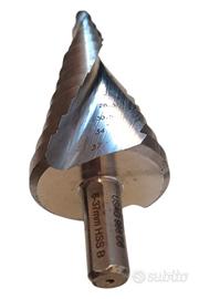 Fresa a scalino Marchio: "Usag" 988 D6 6-37mm HSS B. Usata pochissime volte esclusivamente su scatole di plastica.
