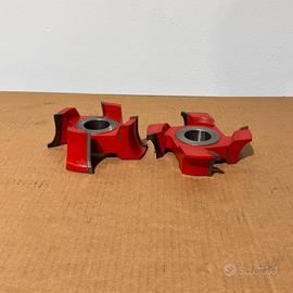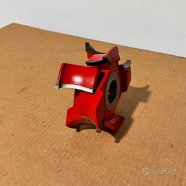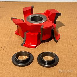 MACCHION ATTREZZATURE S.a.s. Centro affilatura - Commercio macchine per legno Video e foto su: INSTAGRAM: Macchion_Attrezzature FACEBOOK: Macchion Attrezzature WEB: macchion.it PAGAMENTI RATEIZZATI – NOLEGGIO. Codice Articolo: AU 12 – Usato. Fresa per toupie per realizzare fascette bombate per porte o finestre da una larghezza minima di 60 mm ad una larghezza massima di 80 mm. Spessore fascetta 15 mm. Diametro 160 mm. Foro ø 40 mm con 2 riduzioni a spalla per albero ø 35 mm. Nr. 4+4 taglienti Widia ancora nuovi (Sp. 5 mm). Altezza minima della fresa 73 mm. Altezza massima della fresa 100 mm. Giri massimi 8000. Peso 3,85 Kg. Il prezzo indicato di € 195 è imponibile netto fatturabile.