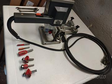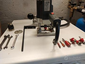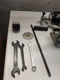 Vendo fresatrice rifilatrice Elu. fresatrice un po' datata ma tenuta in modo perfetto . valida per usarla come pantografo Oppure come rifilatrice . completa di battuta N 4 frese sagomate con cuscinetto N 3 frese per canali di vario diametro. completa di chiavi per smontaggio fresa e riduzione per attacco presa luce.