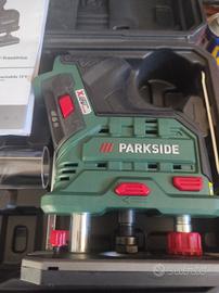vendo fresatrice Parkside ricaricabile senza fili nuova mai usata con adattatore per aspiratore polveri.In valigetta senza batteria e caricatore