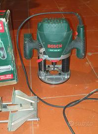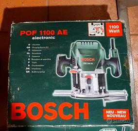 Una fresatrice verticale Bosch POF 1100 AE, un elettroutensile ideale per hobbisti utilizzato per fresare scanalature, rifilare profili o lavorare stampi in legno.