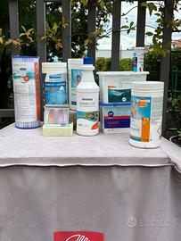 3. Vari prodotti per il mantenimento (cloro, controllo ph e filtri a cartuccia per ricambio pompa)