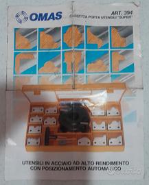 Frese Omas kit multiprofilo 14 pezzi per Toupie per lavorazione legno e affini modello 394 completa di tutte le lame Originali in perfetto stato e affilate. Diametro testa porta utensili 10 cm. più ferri 11 cm o più. altezza testa 5 cm. Con foglio esempi per lavorazioni foro albero 30 mm. oppure 35 mm. ritiro su Grosseto o spedizione.