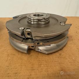 MACCHION ATTREZZATURE S.a.s. Centro affilatura - Commercio macchine per legno Video e foto su: INSTAGRAM: Macchion_Attrezzature FACEBOOK: Macchion Attrezzature WEB: macchion.it PAGAMENTI RATEIZZATI – NOLEGGIO. Codice Articolo: AU 08 – usato. Gruppo frese Centerinox per toupie per porte interne. Ø 220 mm. Ø foro del mozzo 35 mm. Altezza 85 mm. Sagoma con profilo arrotondato. Spessore del listello tondo 17 mm. Spessore minimo della porta 45 mm. Spessore massimo della porta 56 mm. Fresa centrale variabile da 11 a 22 mm per incastro dello specchio. 22 Coltelli sagomati HM integrale di ricambio. Chiave per aprire i mozzi e regolare lo spessore. Peso di ogni gruppo circa 13 Kg. Il prezzo indicato di € 480 è imponibile netto fatturabile.