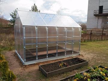 Serra robusta con struttura a CASETTA, ad USO PROFESSIONALE, con telaio in acciaio zincato e rivestimento con pannelli in policarbonato da 6 mm.