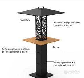 Funghi a pellet per esterno o tavernette con tavolo e ruote