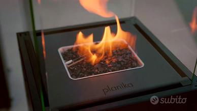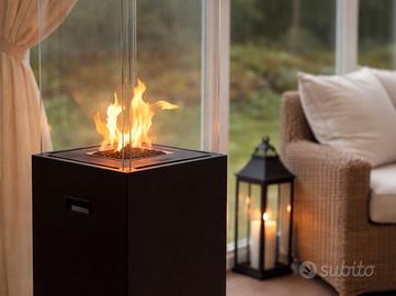 fiamma viva visibile su 4 lati in vetro temperato, effetto camino moderno elegante e raffinato.