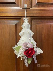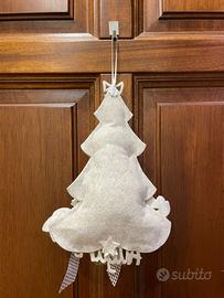 Fuoriporta a forma di alberello in pannolenci beige con decorazioni.