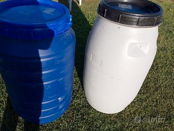 Fusti di plastica con coperchio a vite capacità di 1 + 50 kg circa vendo per esubero. Rispondo a email. Vendo singolarmente.