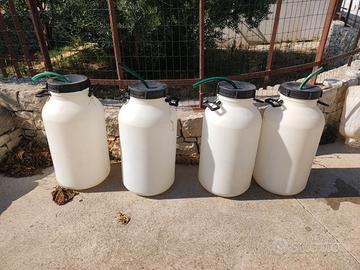 4 fusti in polietilene per uso alimentare, di colore bianco e tappo nero. Ideali per olio o vino. Prezzo singolo 30€, trattabile se li prendi tutti e 4.