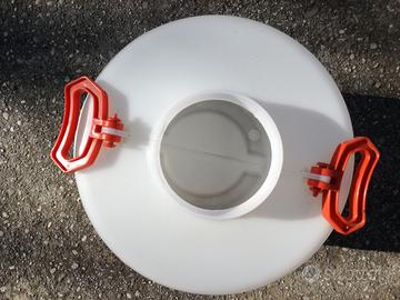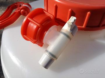 Come da foto vendo fustino in plastica (HDPE) polietilene ad alta densità, cilindrico con bocca larga e rubinetto (con maniglia rotta ma funzionante), tappo a vite, sezione cilindrica, capacità 25 Lt. Condizioni perfette (unico difetto nel rubinetto).