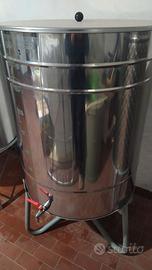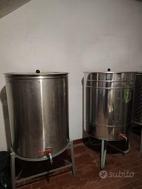 Fusti per olio in acciaio inox da 250 litri ciascuno con rubinetto. 150 euro costo singolo fusto Treppiedi a parte, ciascuno 60 euro realizzati dal fabbro