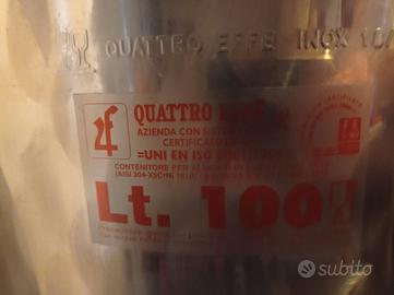 Contenitore inox 100 litri completo di coperchio e piede(removibile e anch'esso inox). Utile per conservazione olio o tramuta vino. Fusto praticamente nuovo, vendo perché non produco più olio. Ritiro a mano.