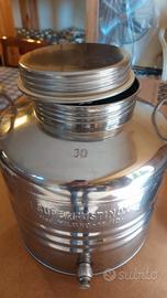 Come da foto vendo fustino per olio da 30 litri usato con treppiedi di appoggio. Acciaio inox 18/10 modello Milano? con rubinetto. Supporto su gommini altezza cm 40. info solo su Subito.it.