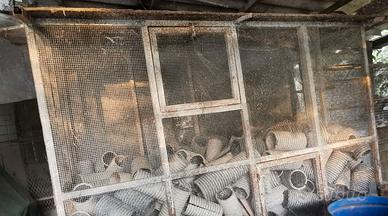 Gabbia contenitore pannochie usata in ottime condizioni, lunghezza cm 205 larghezza cm 91 altezze cm 180 + 20 cm di piede con tetto inclinato + tre porticine cm 50x50, no spedizione