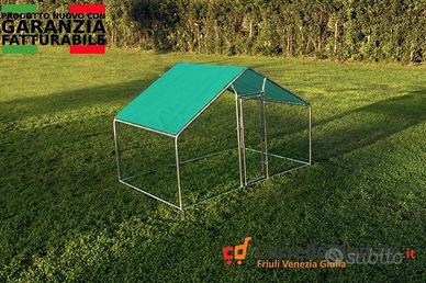 Pollaio, recinto per animali da esterno 3 x 2m x 2m H - 6 mq Prezzo 199 euro IVA E TRASPORTO INCLUSI Possibilità di pagare alla consegna con un sovrapprezzo di 6 euro IVA inclusa. La nostra spaziosa e versatile gabbia per animali / pollaio di 2x3m è l'ideale per la custodia di polli, galline, anatre e altri piccoli animali domestici e da cortile come cani, gatti , conigli , oche e altri volatili di grandi dimensioni. Realizzata con struttura tubolare di sezione 38mm e spessore interno 1mm in acciaio zincato di alta qualità. Rete metallica rivestita in pvc con alveoli 25x25mm e prodotta con filo di spessore 1mm, è fornita di una tettoia parasole, resistente ai raggi UV ed impermeabile in Polietilene. Facile da costruire, il telaio della gabbia è dotato di meccanismo di assemblaggio ad aggancio rapido. Caratteristiche Tecniche -Dimensioni: 3 x 2 x h 2 m -Altezza Fianco: 120 cm -Dimensioni apertura Porta: 56 x 158 cm -Porta con sistema di montaggio regolabile che permette di modificare le dimensioni del battente della porta in modo da bloccare qualunque tentativo di accesso da parte di animali predatori -Sistema di chiusura con lucchetto -Struttura tubolare in acciaio zincato da 38 mm e spessore interno 1 mm -Telaio ad aggancio rapido -Rete Metallica rivestita in PVC, con alveoli da 25 x 25 mm e spessore del filo 1 mm -Colore Telone: rosso -Telone in Polietilene 190 x 300 cm -6 MQ -Peso totale 50kg (verificate sempre il peso delle strutture, diffidate da pesi troppo bassi) Contattaci subito per avere maggiori informazioni. Oppure inviaci un messaggio con il tuo numero e ti richiameremo non appena possibile Telefono/Whatsapp: