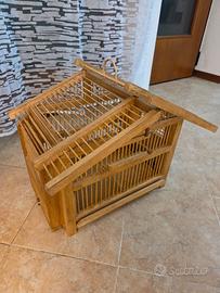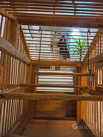 Vendo gabbia per uccelli fatta a mano in legno con vari scomparti per accedervi, con altalena, e spazi per il mangime.