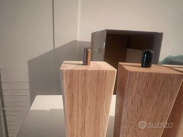 Gambe in Legno Massello (4 pezzi) con design robusto a forma di A con piastra di montaggio e vite.