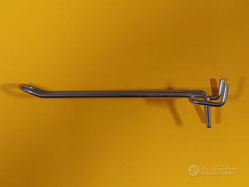 Disponibili 1400 ganci nuovi in acciaio cromato fatti in Italia lunghi cm 15, per pannelli forati in metallo o legno fino a 1 cm di spessore, da usare per esporre prodotti o come portautensili. Prezzi: 100 pz €20, per tutto il lotto € 0,10 ciascuno. Per quantità diverse contattatemi. Il prezzo indicato si riferisce a 100 pezzi.